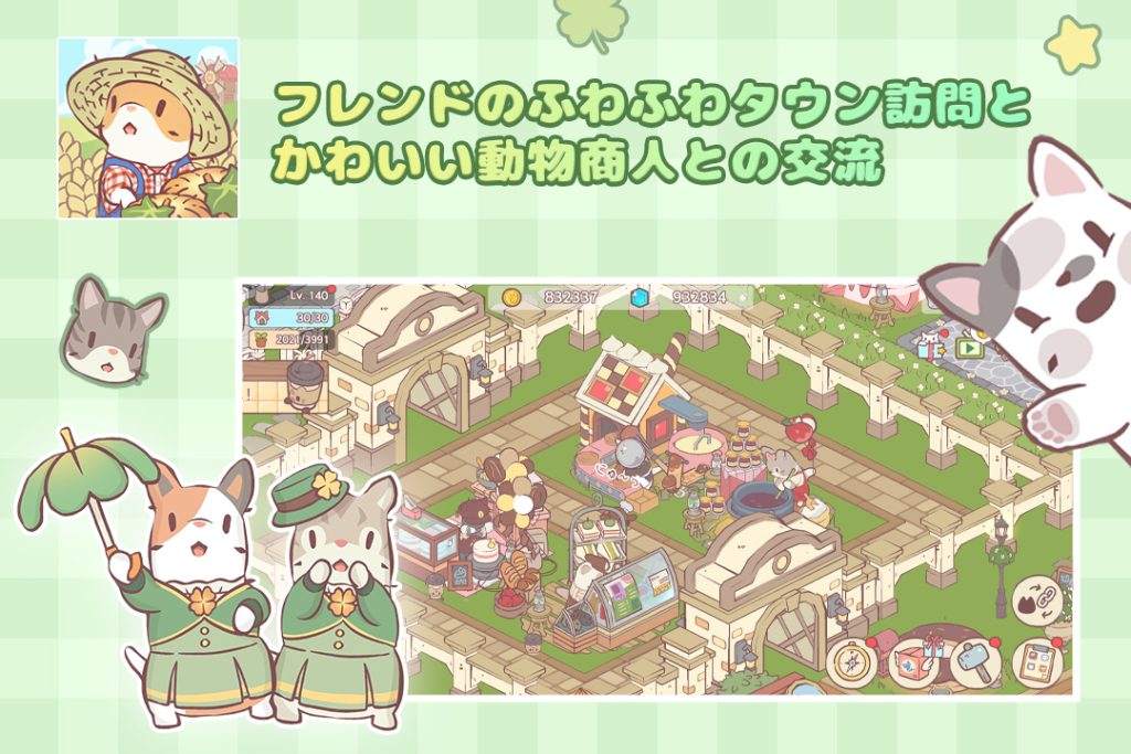 『猫とスープ ふわふわタウン』は、かわいい猫やかわいい動物と農業・町作りを楽しめる癒し系カジュアルシミュレーションゲームです。