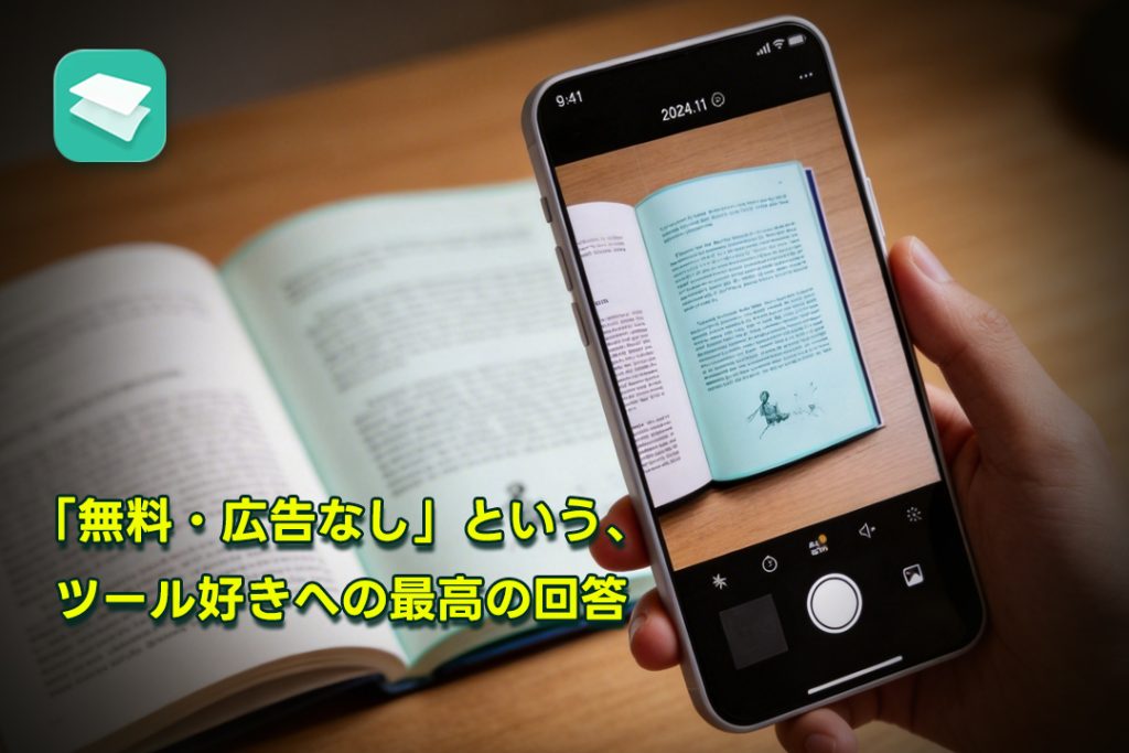 まず驚くのが、これほど高性能なのにvFlat Scanは無料の広告なしスキャナーだということ。作業中に変な広告で集中力を削がれることがない、この「道具」としての潔さが、効率を求める僕らにはたまらなく心地いいんです。