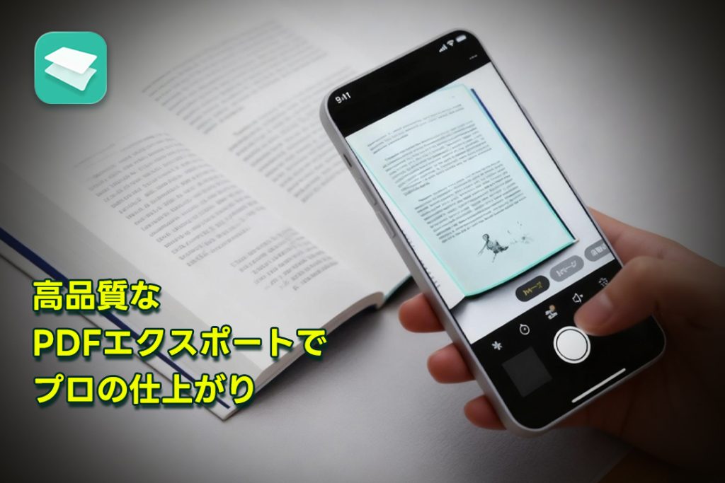 スキャンしたデータは、高品質なPDFファイルとしてエクスポートできます。ページの並べ替えはもちろん、PDFの品質選択や色の調整までアプリ内で完結。スマホ一台あれば、外出先でも即座に「会議資料のデジタル化」や「参考書のデータ化」が完了します。