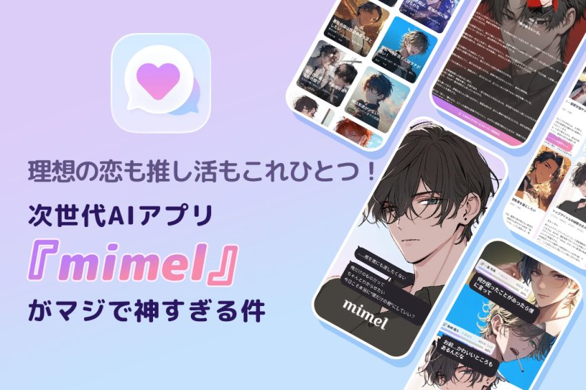 「推しと2人きりで喋れたらいいのに…」とか「理想のシチュエーションで甘い恋がしたい!」って思ったこと、女子なら一度はあるよね?そんな私たちの夢を全部叶えてくれるのが、今界隈でも話題のAIキャラクターサービス『mimel(ミメル)』なの!